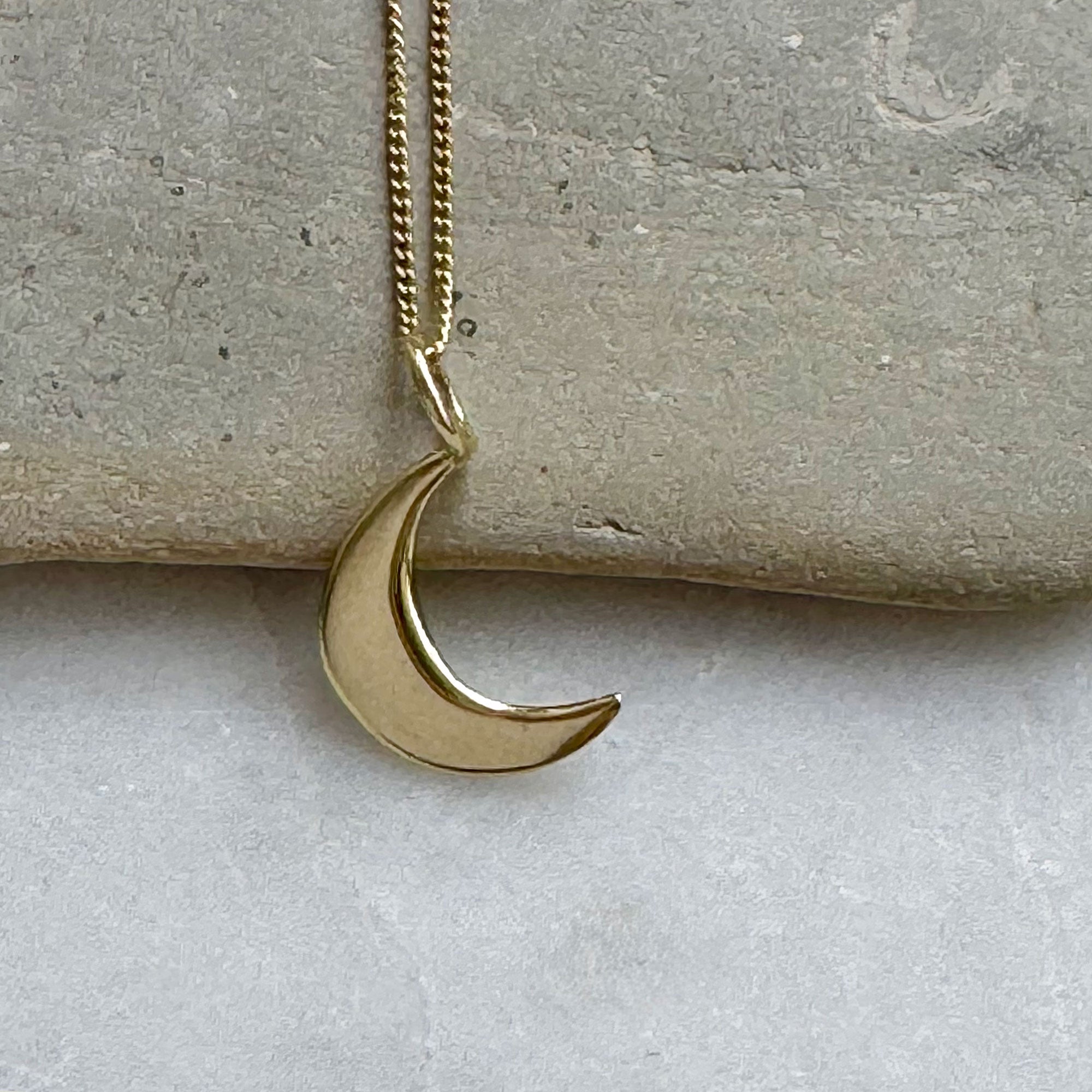 A stunning 14ct solid gold moon charm on a 9ct solid gold chain.