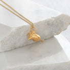 Pendant, chain and fittings are made from gold vermeil. Vermeil is 18 carat gold plated on a sterling silver base. It’s a surface treatment and will fade over time. Be careful with sun cream or perfumes and always remove jewellery before swimming or bathing. Please do not use metal cleaners on vermeil as this may remove the plating.