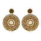 Handcrafted with meticulous beadwork, these earrings feature a double-circle design in glowing bronze tones, highlighted with metallic accents for a refined, modern edge.