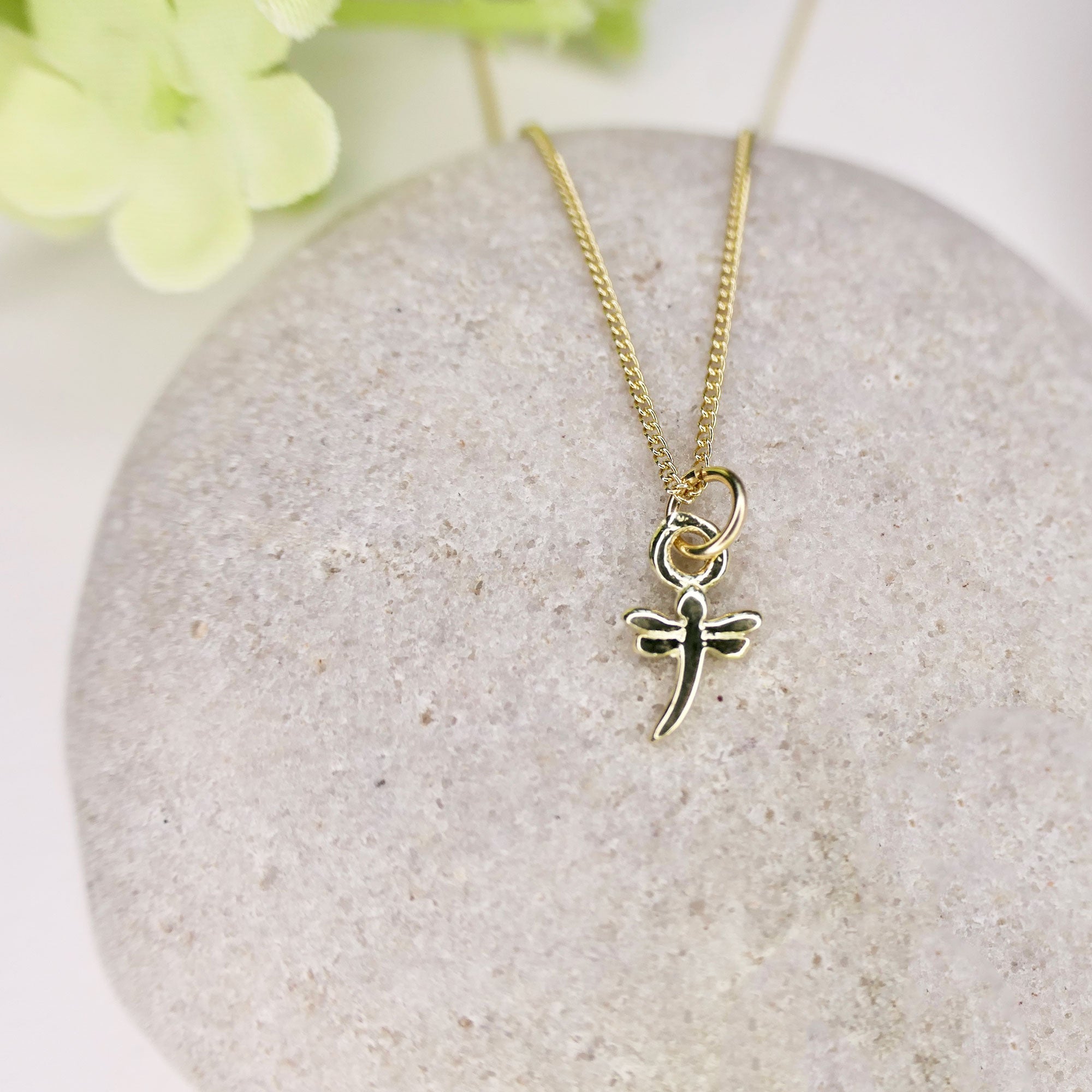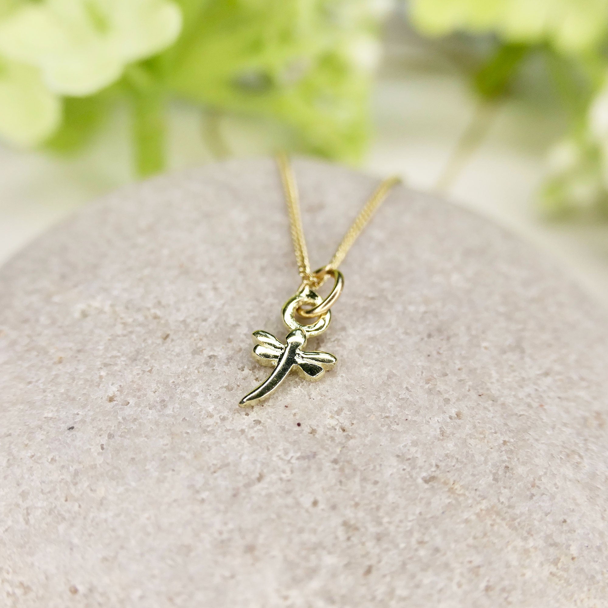 Mini Dragonfly Charm Necklace 14ct Solid Gold