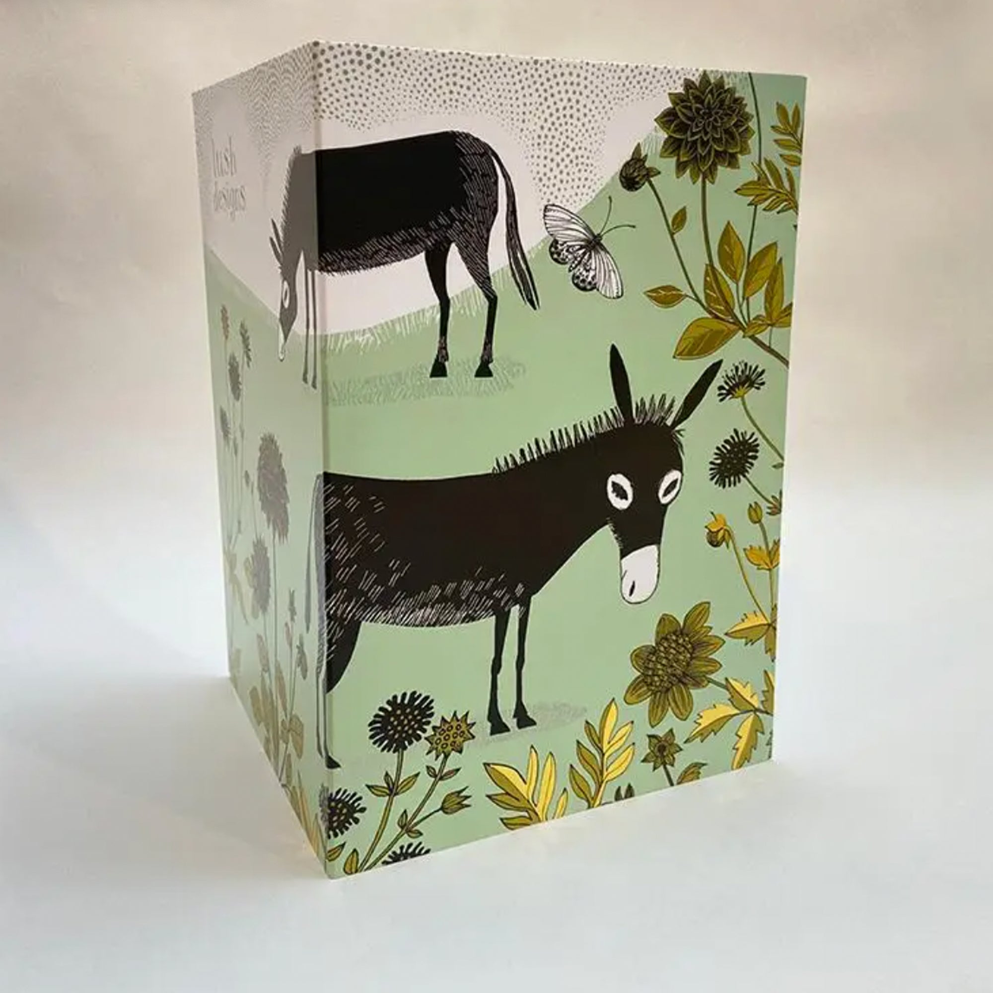 Fun greeting card by UK designers Lush Designs. Something about the donkey's expression makes this a firm favourite with us. The picture wraps around the card and the card is blank inside for your own message. The foil detailing adds a depth of colour.