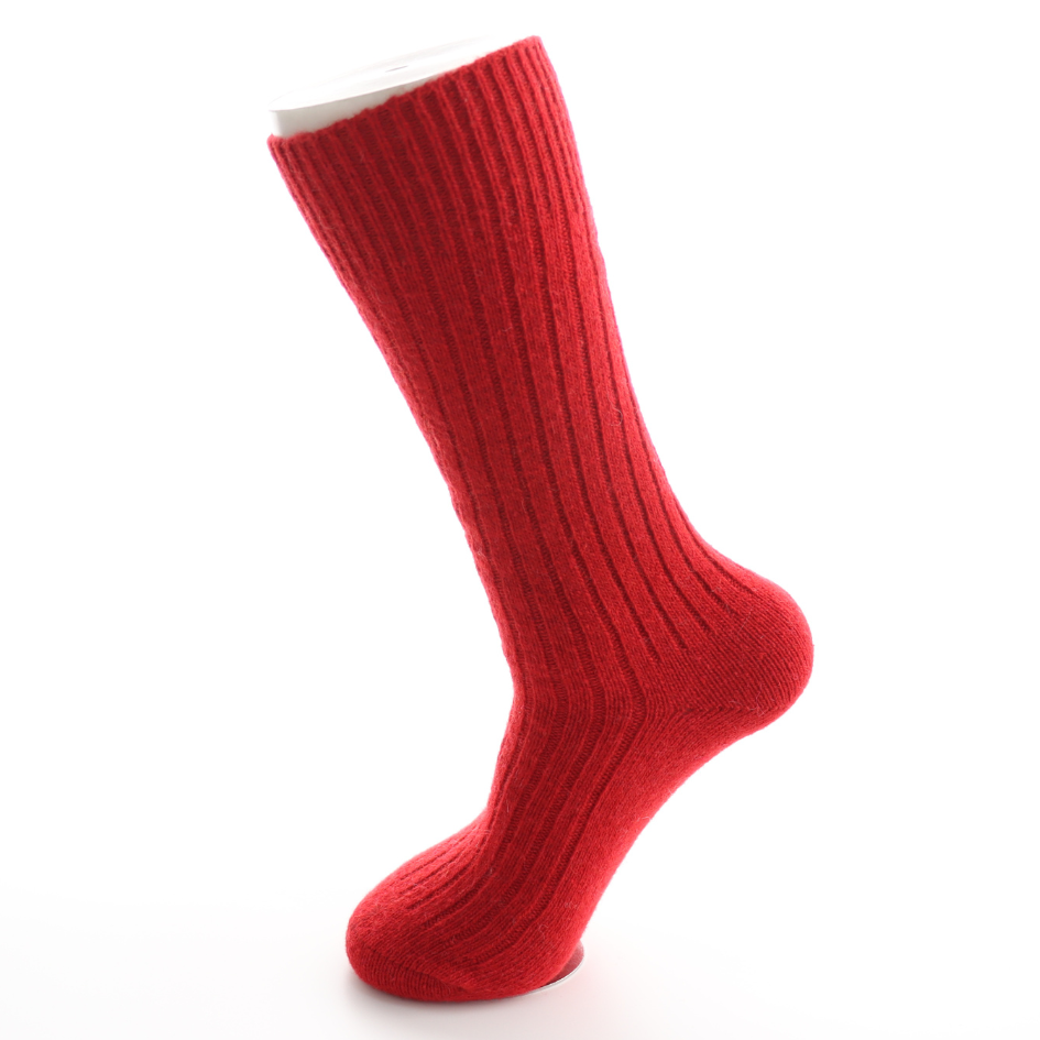 Red winter socks on a white background with 'Miss Sparrow' label.