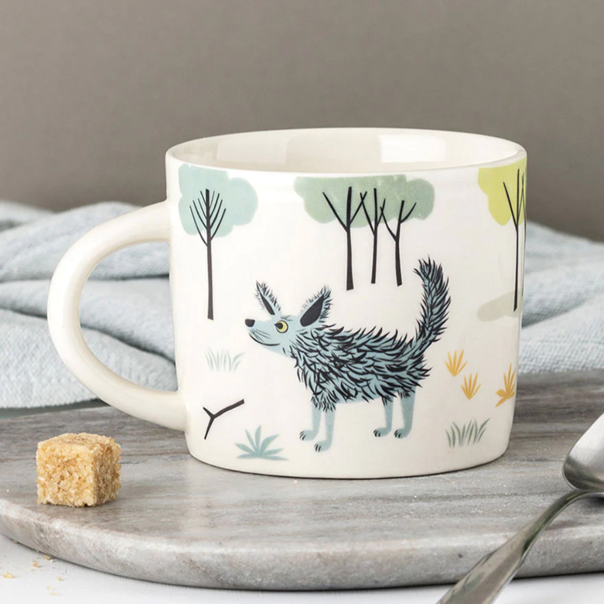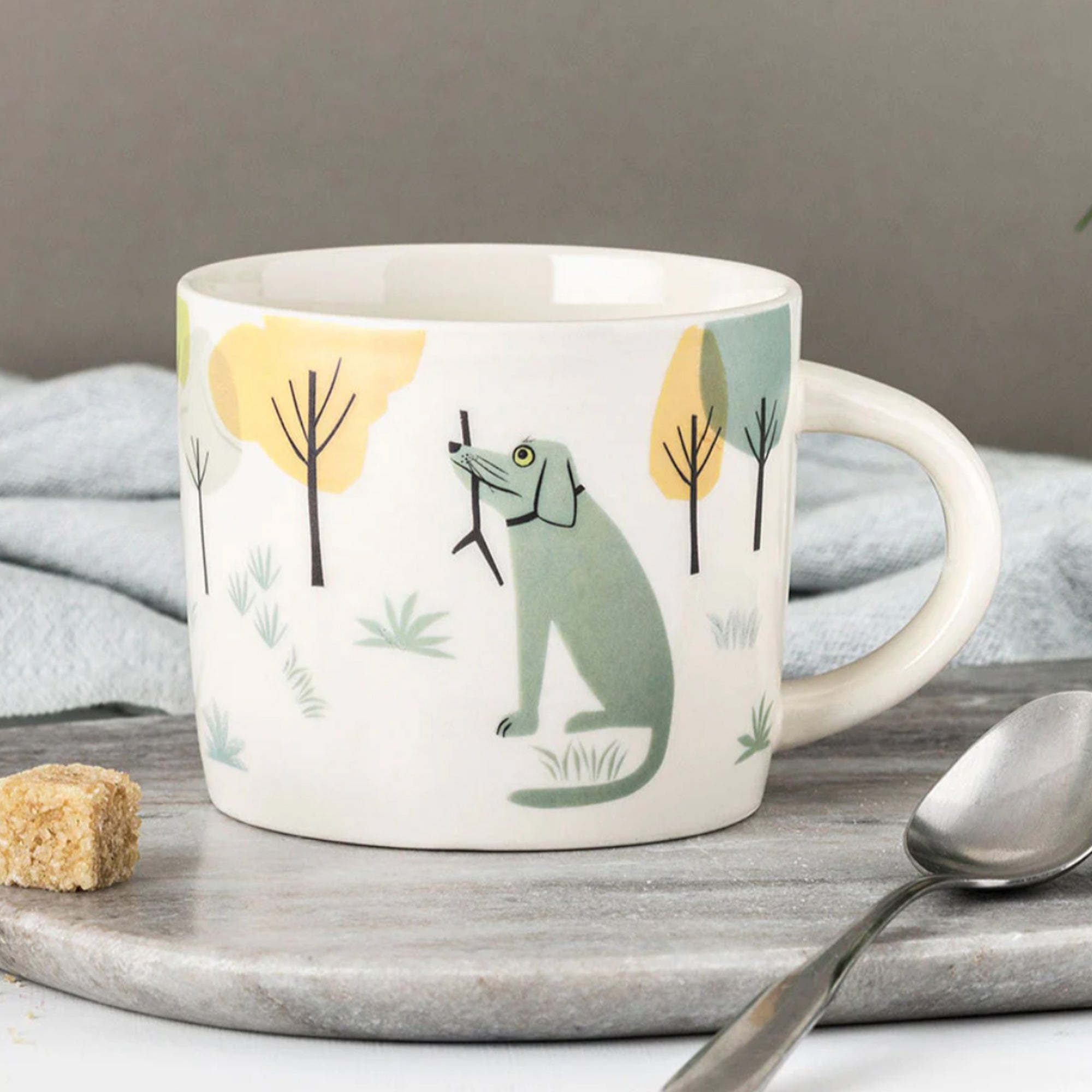A handmade mug by Hannah Turner decorated with her beautiful dog illustrations.