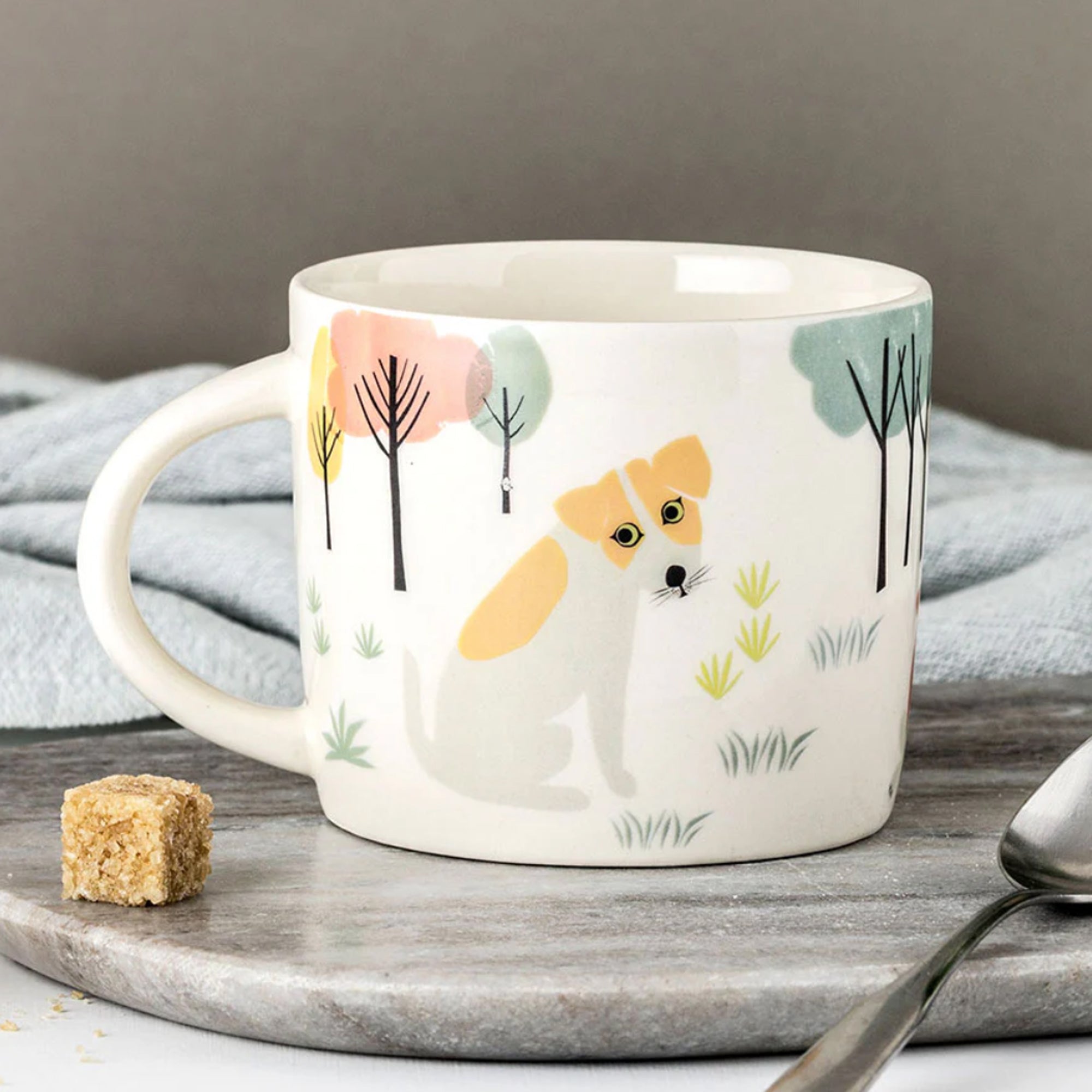 A handmade mug by Hannah Turner decorated with her charmingly quirky dog illustrations part of her Barklife range which can't help but make you smile.