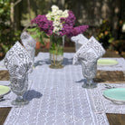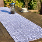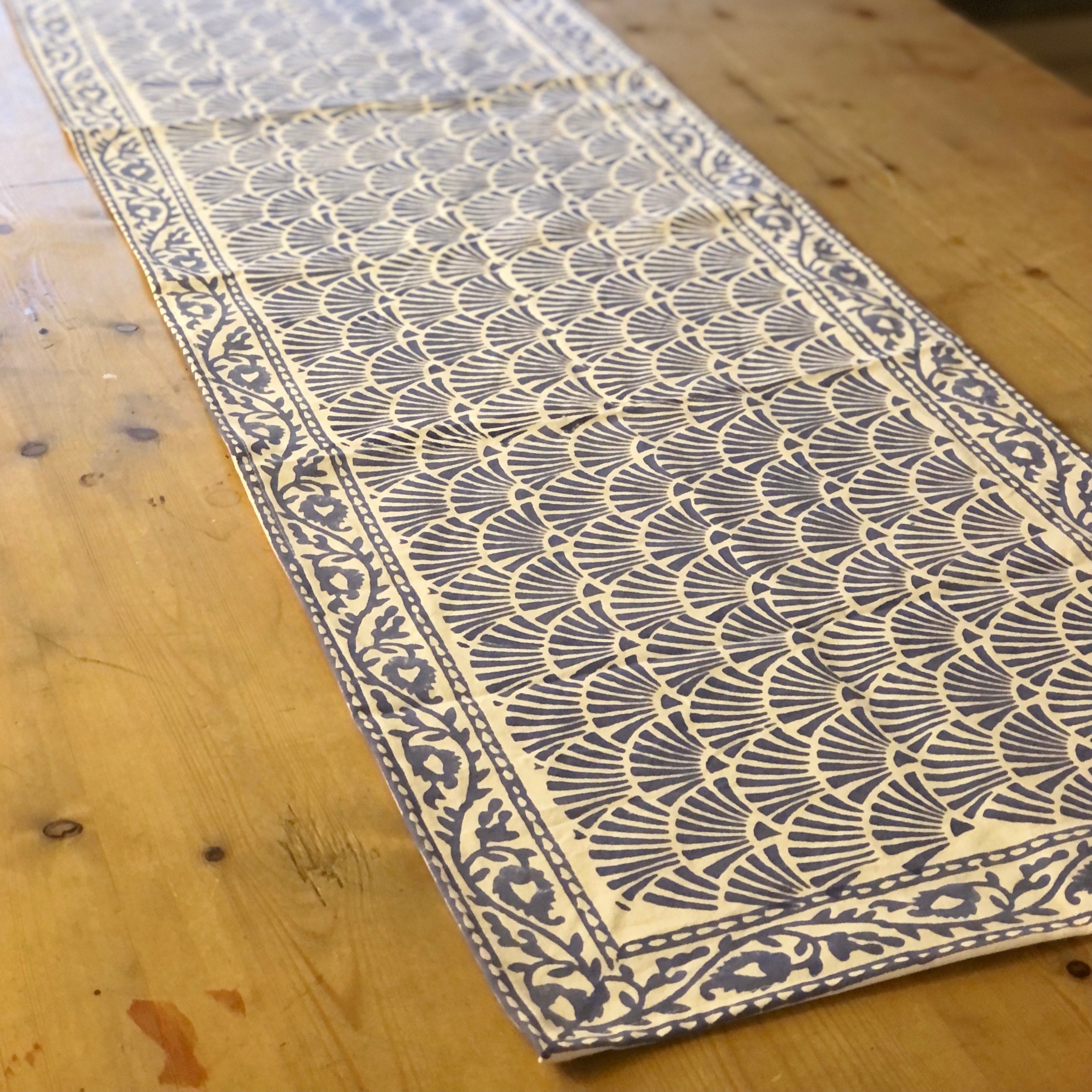 A gorgeous table runner in fabric block-printed using traditional methods in Jaipur.