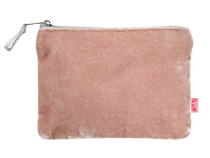 Dusky Pink Velvet Coin Purse with Grey Zip.