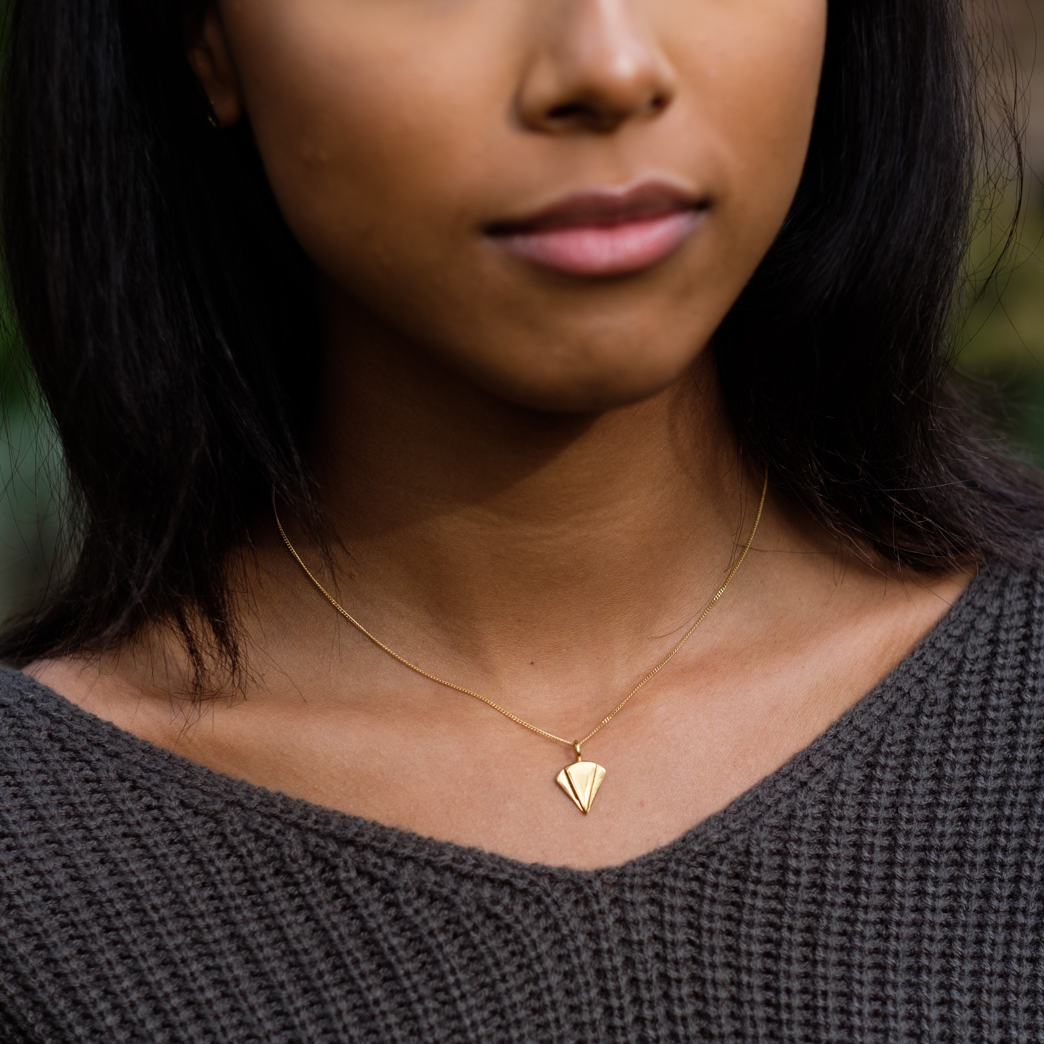 This gold vermeil necklace features our stunning small Art Deco fan pendant.