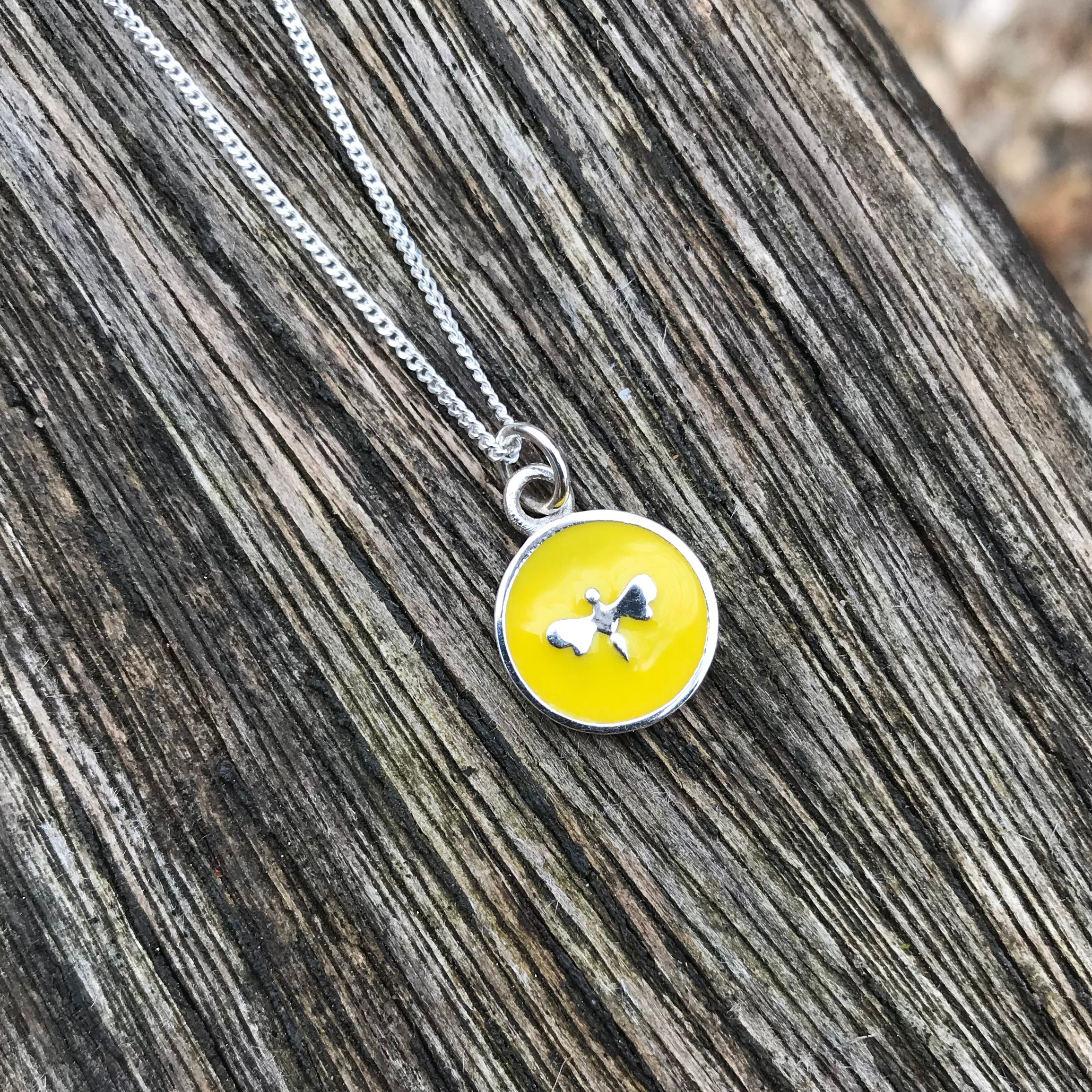Delicate Yellow Enamel Necklace with Bee Design in Sterling Silver.