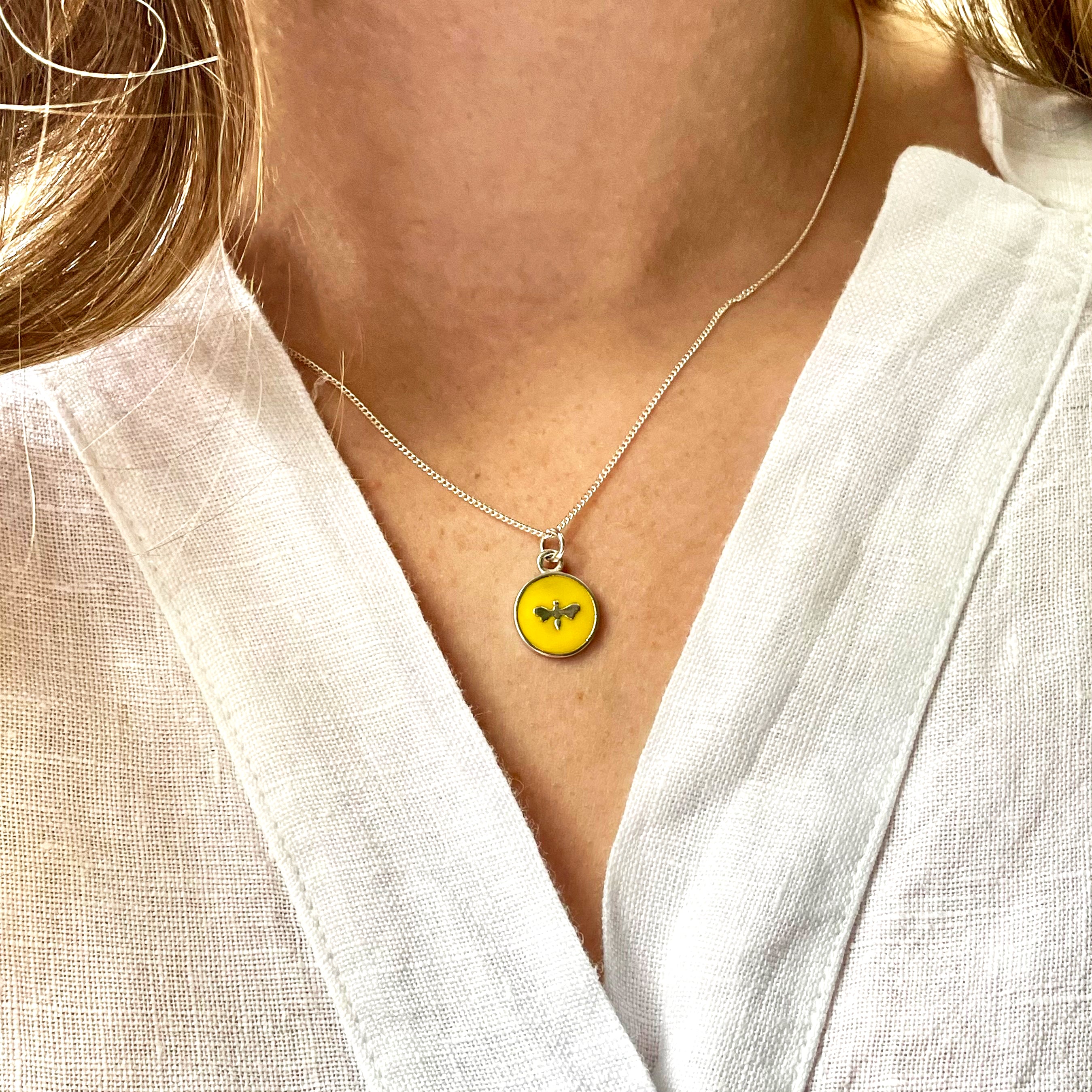 Yellow is often thought to be the colour of friendship and summer, so this piece would make the ideal summer birthday gift or bridesmaids present. Hand-enamelled in Birmingham and designed by Julia in our Nottinghamshire studio, this sterling silver necklace is part of our Enamel Collection, and we also have a wide range of matching bee jewellery too.
