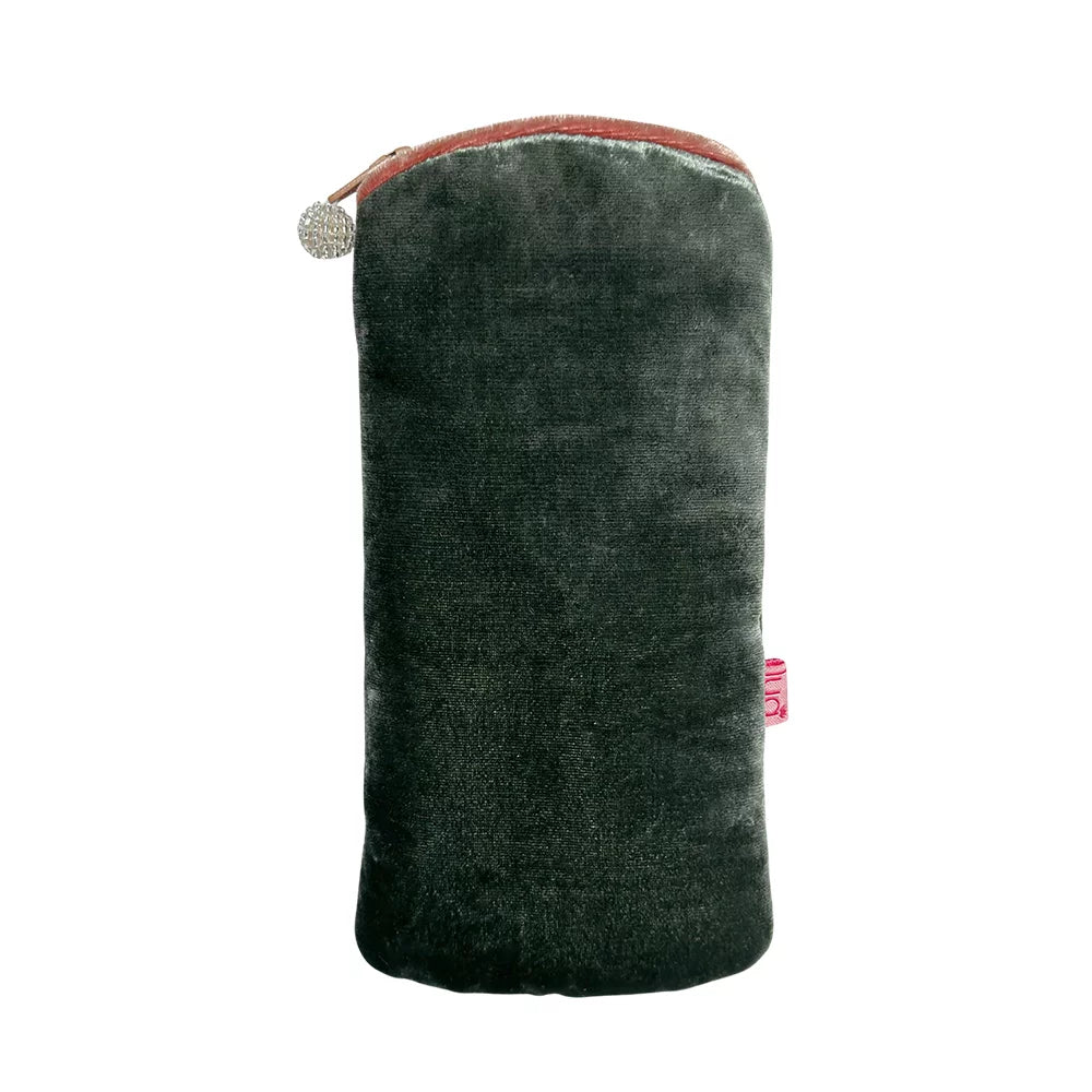 Velvet Glasses Purse Dark Sage with Salmon Pink Trim