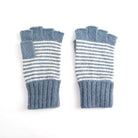 Fingerless wool gloves in a stripe pattern in classic denim blue.