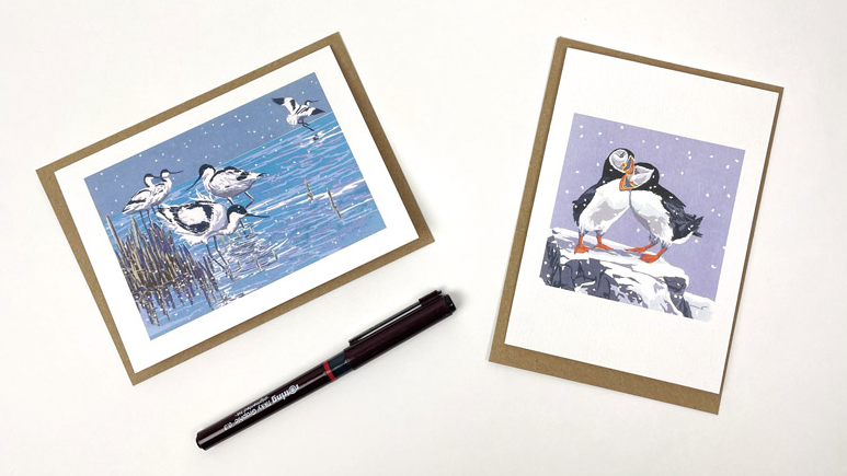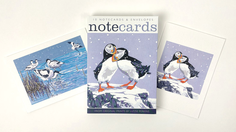 Pack of 10 Notecards - Snowy Puffins and Winter Avocets by Lizzie Perkins