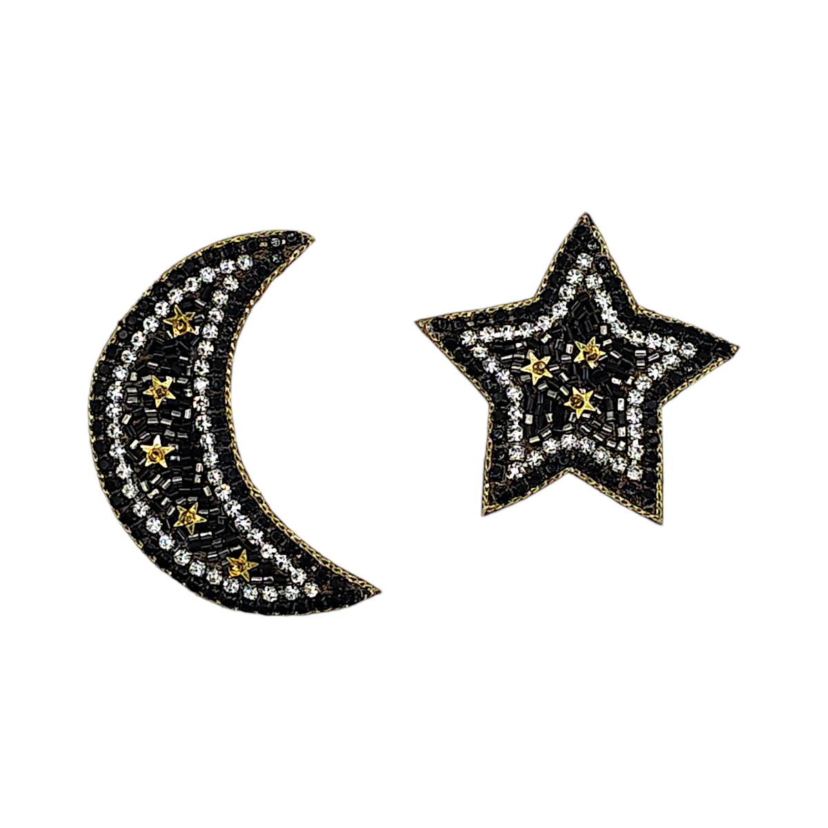 Indulge in celestial glamour with our handmade Black & Gold Mix Moon & Star Earrings. The sparkling design is perfect for partywear, adding a touch of elegance to any outfit. The celestial elements bring a magical touch to your fashion statement.