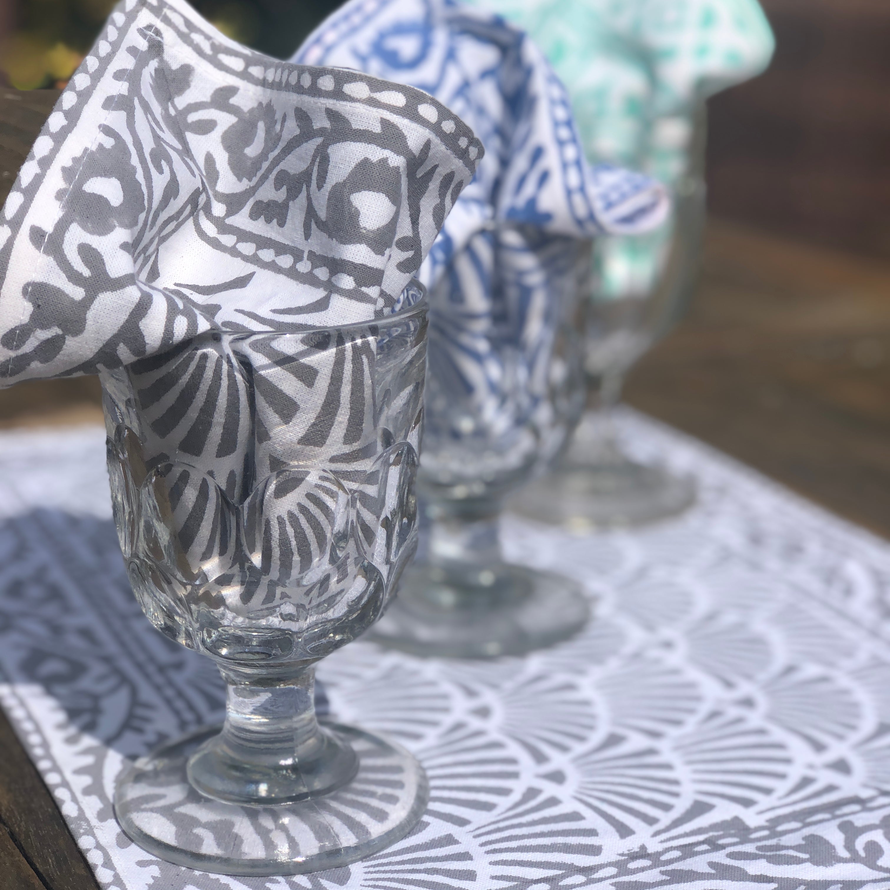 Following the success of our block print range, we decided to make some gorgeous accessories for the home. Working closely with craftsmen in India, we have expanded our range to include these stunning napkins, which can be used every day or can be saved for special occasions. They are available in a choice of colourways.
