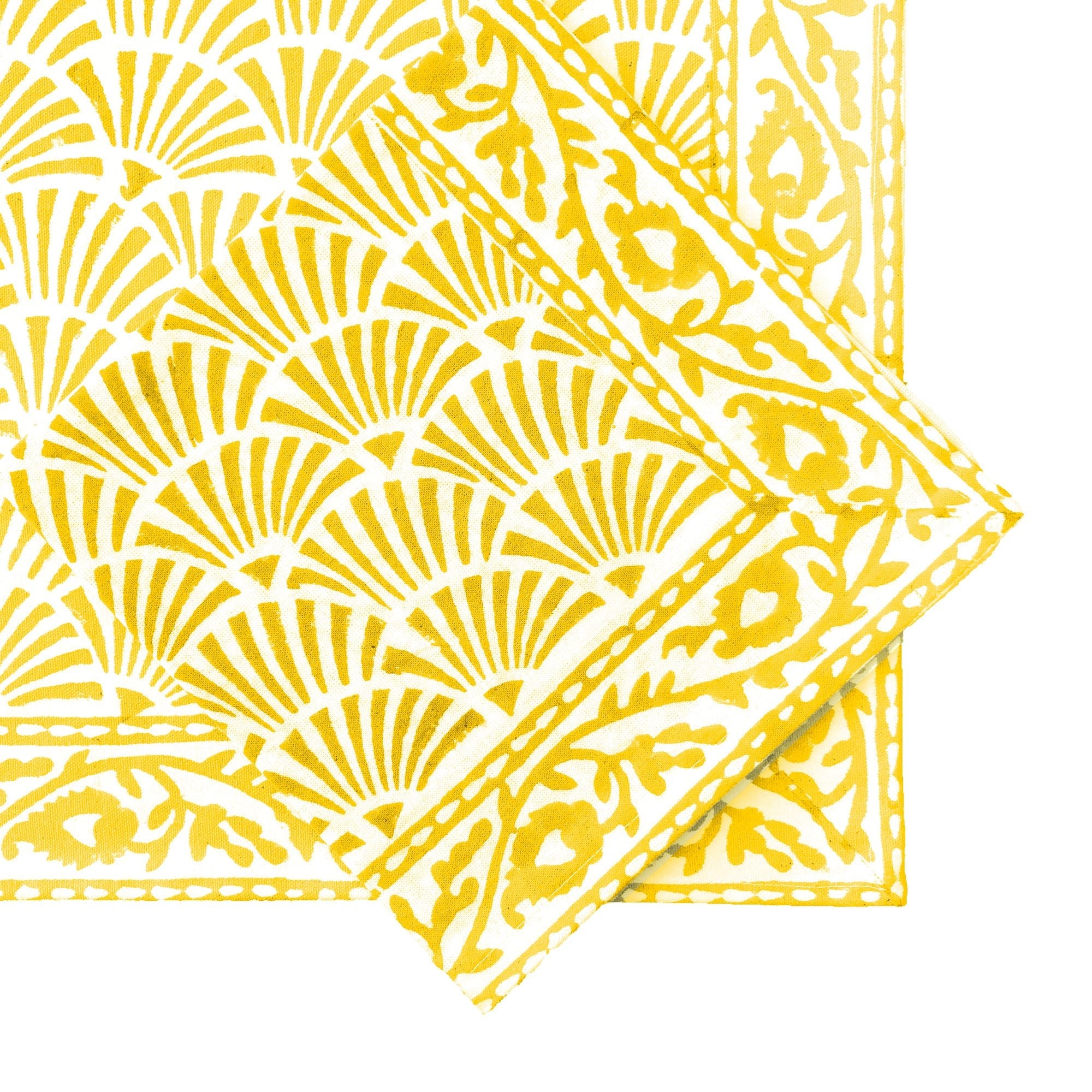A set of 6 placemats in cotton fabric, block-printed using traditional methods in Jaipur.
