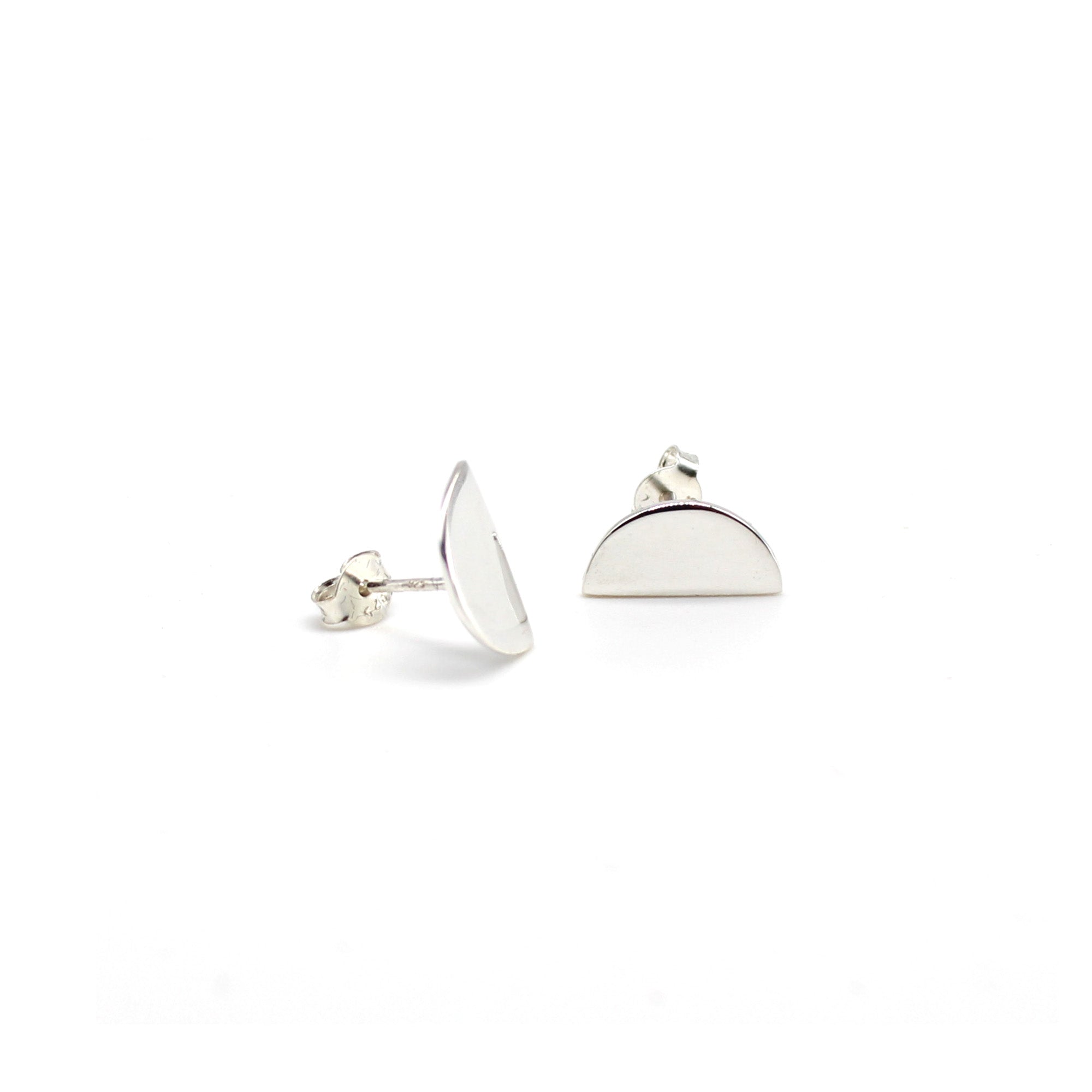 Half Moon Semi Circle Stud Earrings Sterling Silver