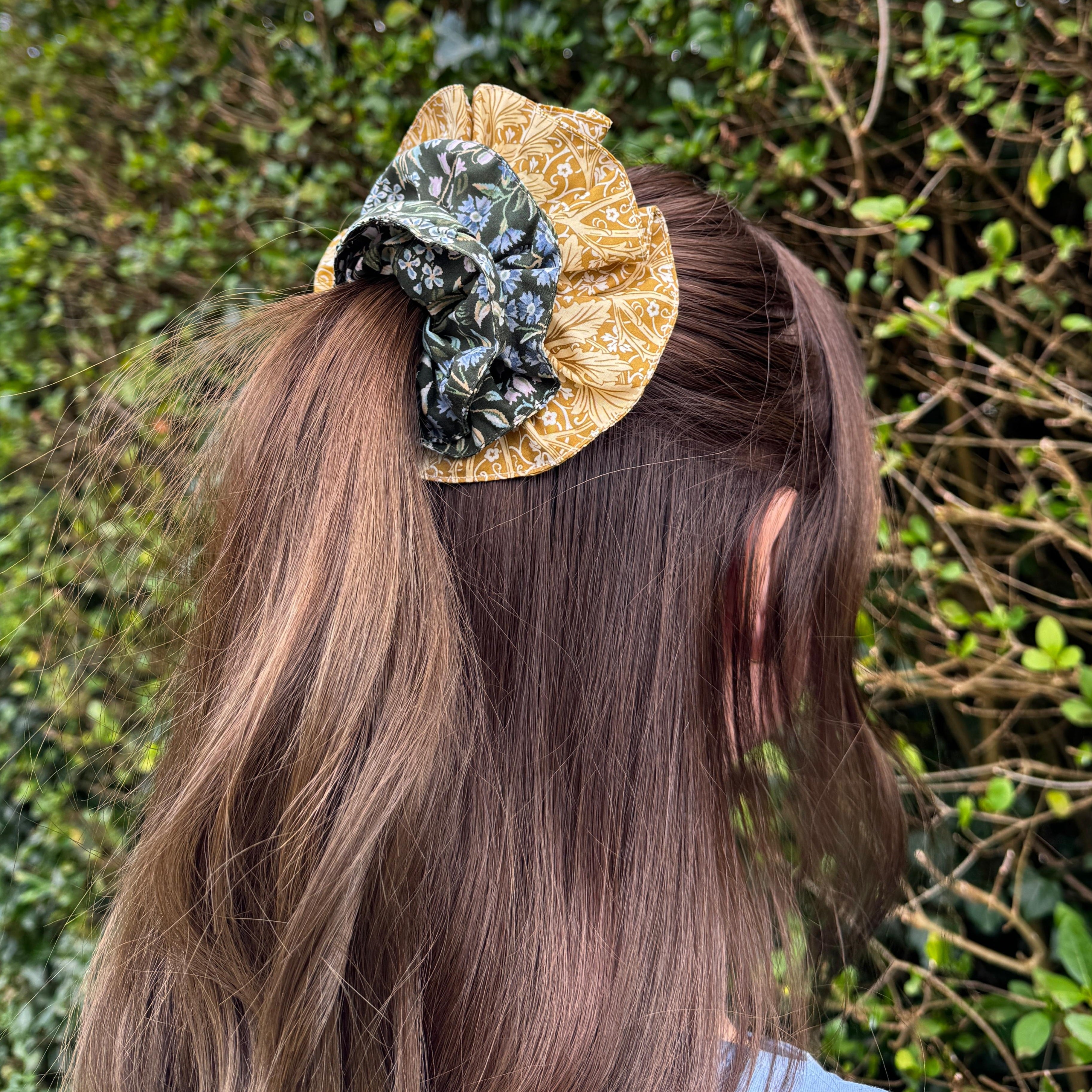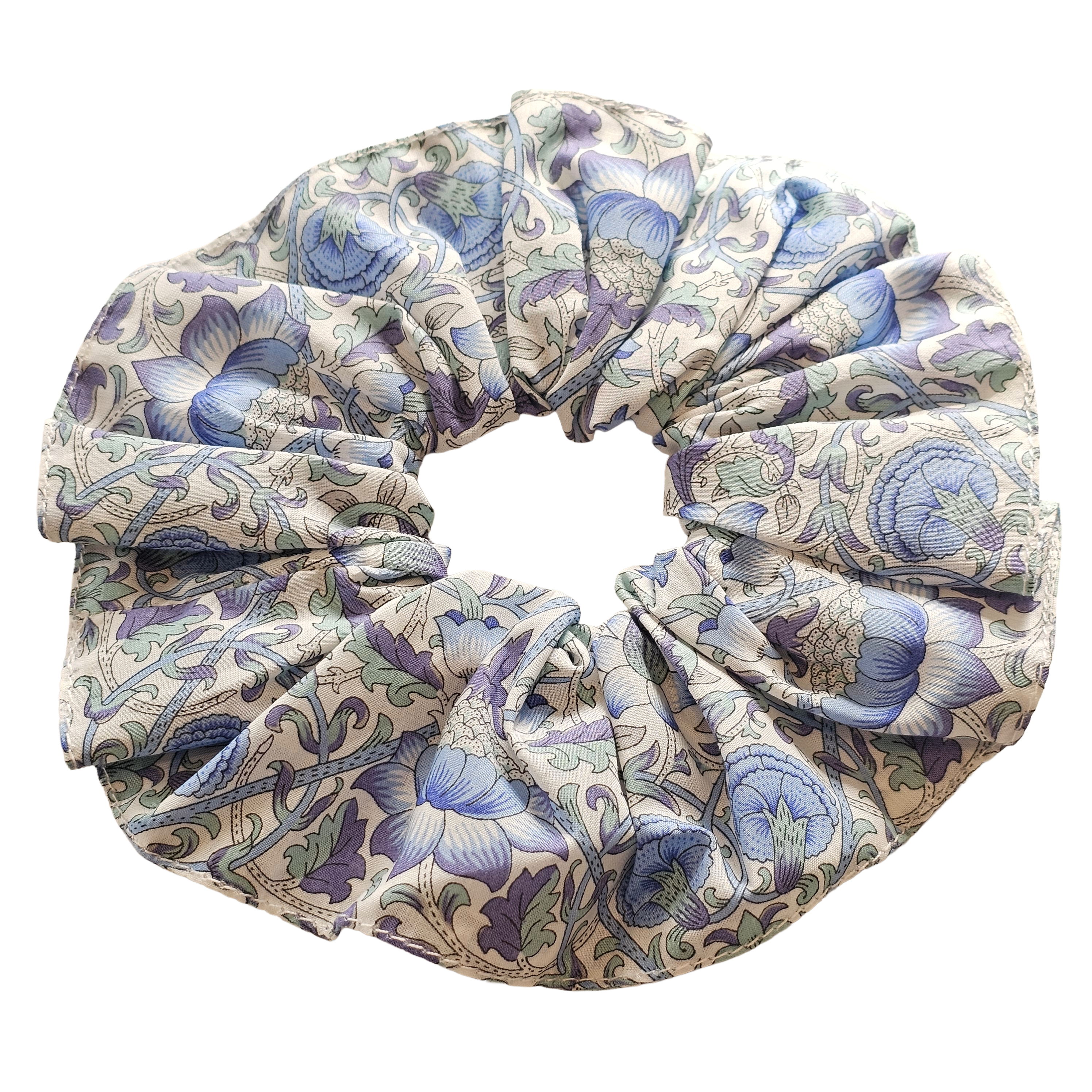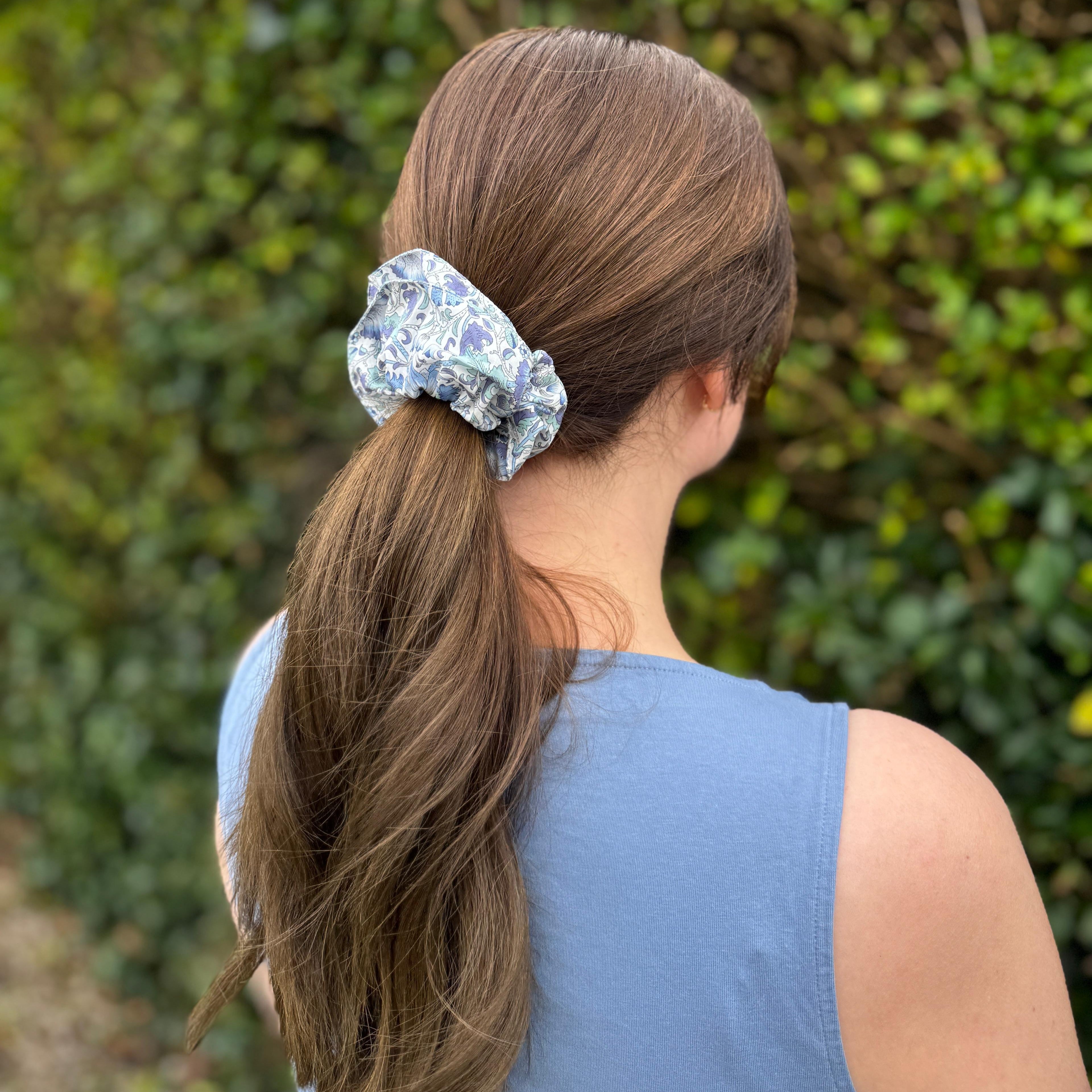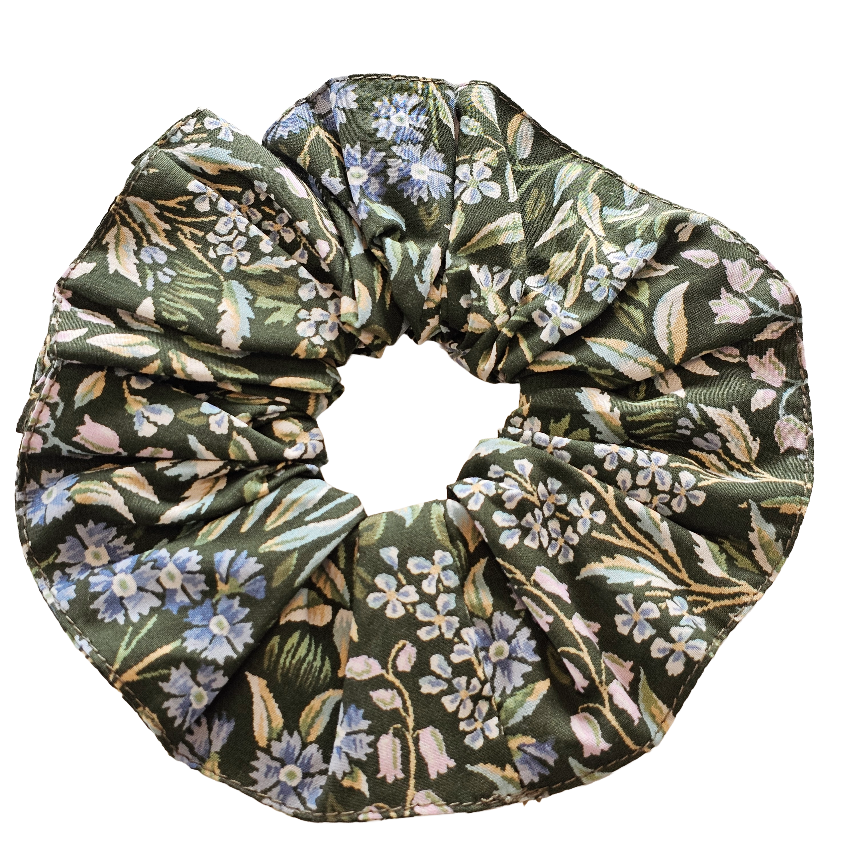 The Morris Collection Hair Scrunchie: Bluebell Tapestry in Greens and Blues
