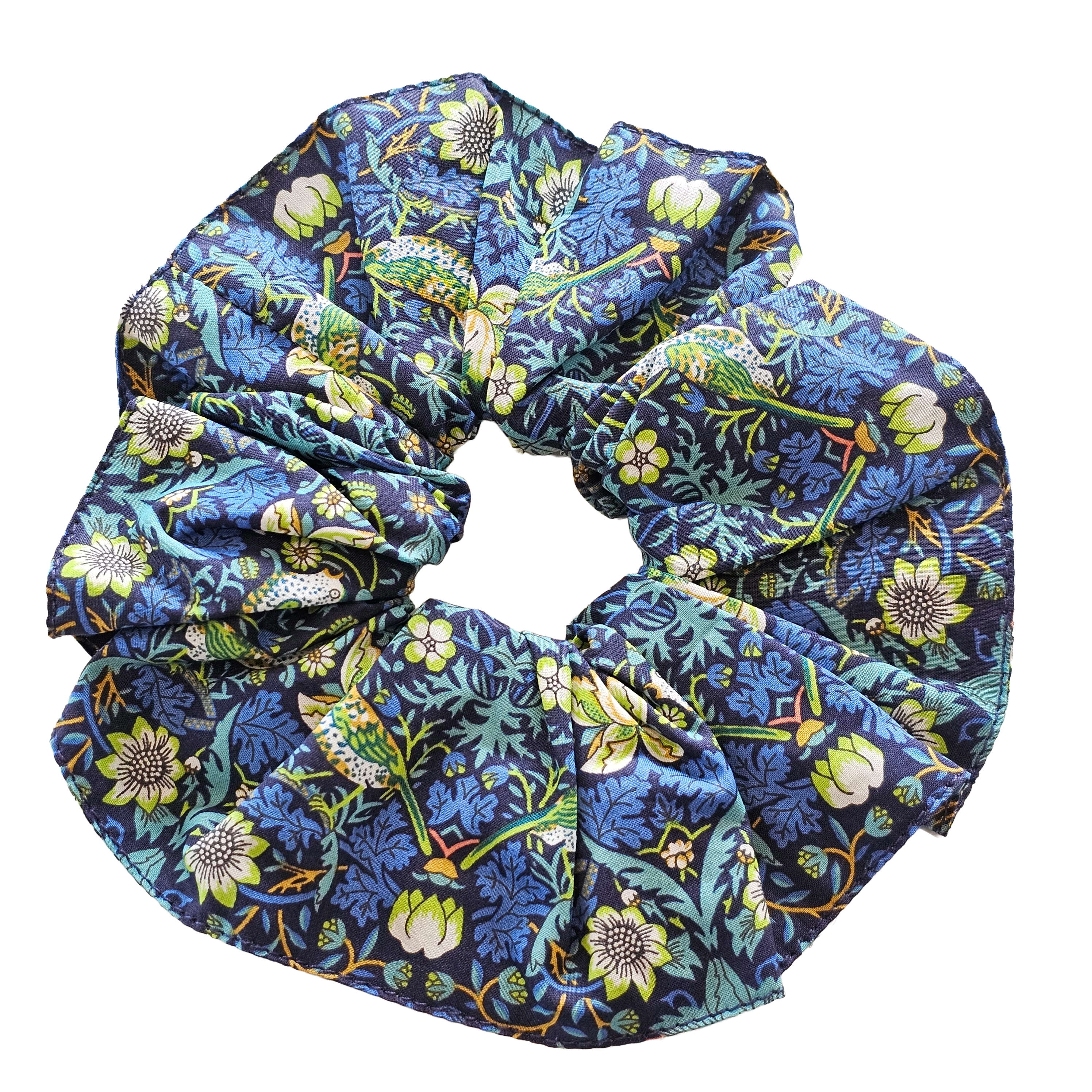 The Morris Collection Hair Scrunchie: Strawberry Thief Blue