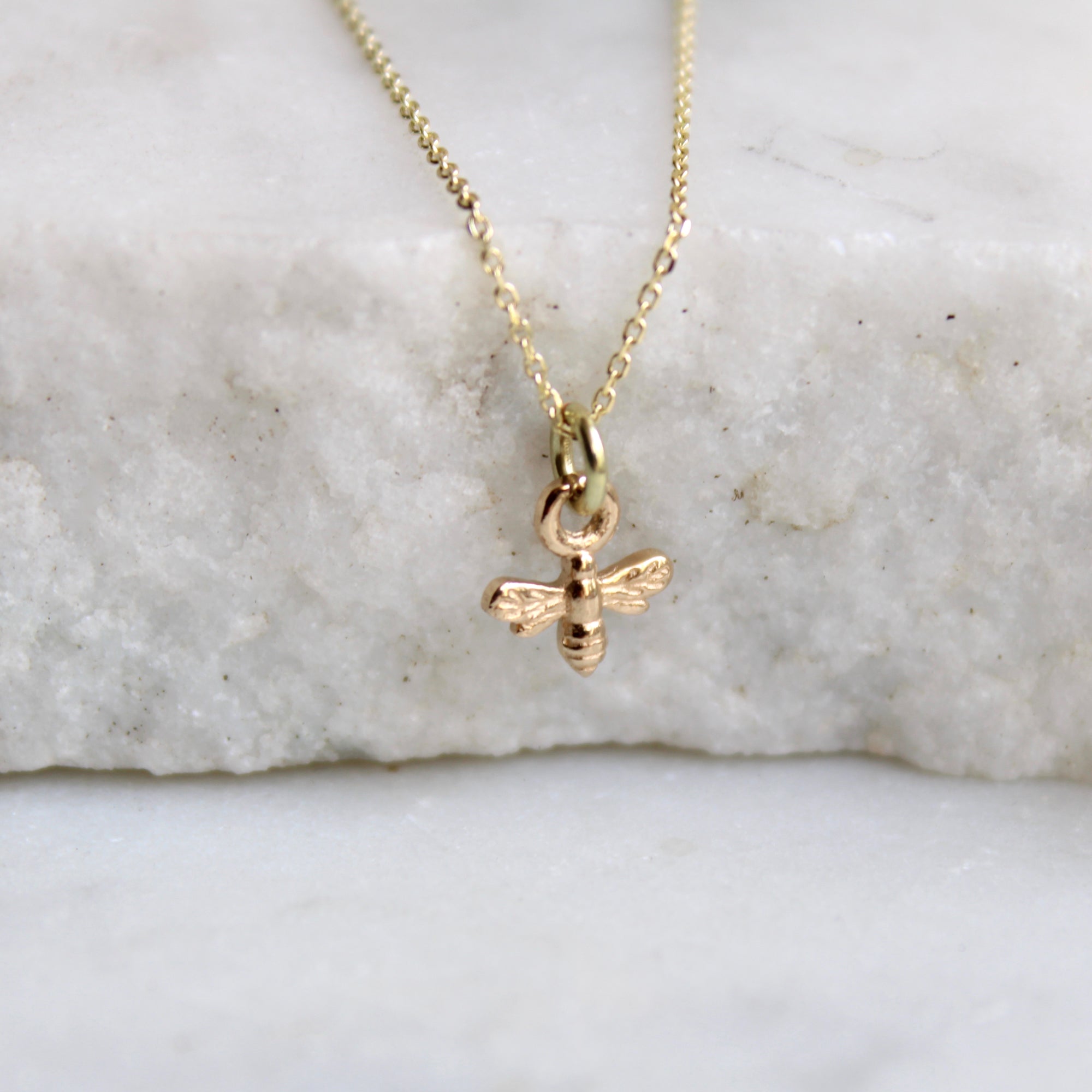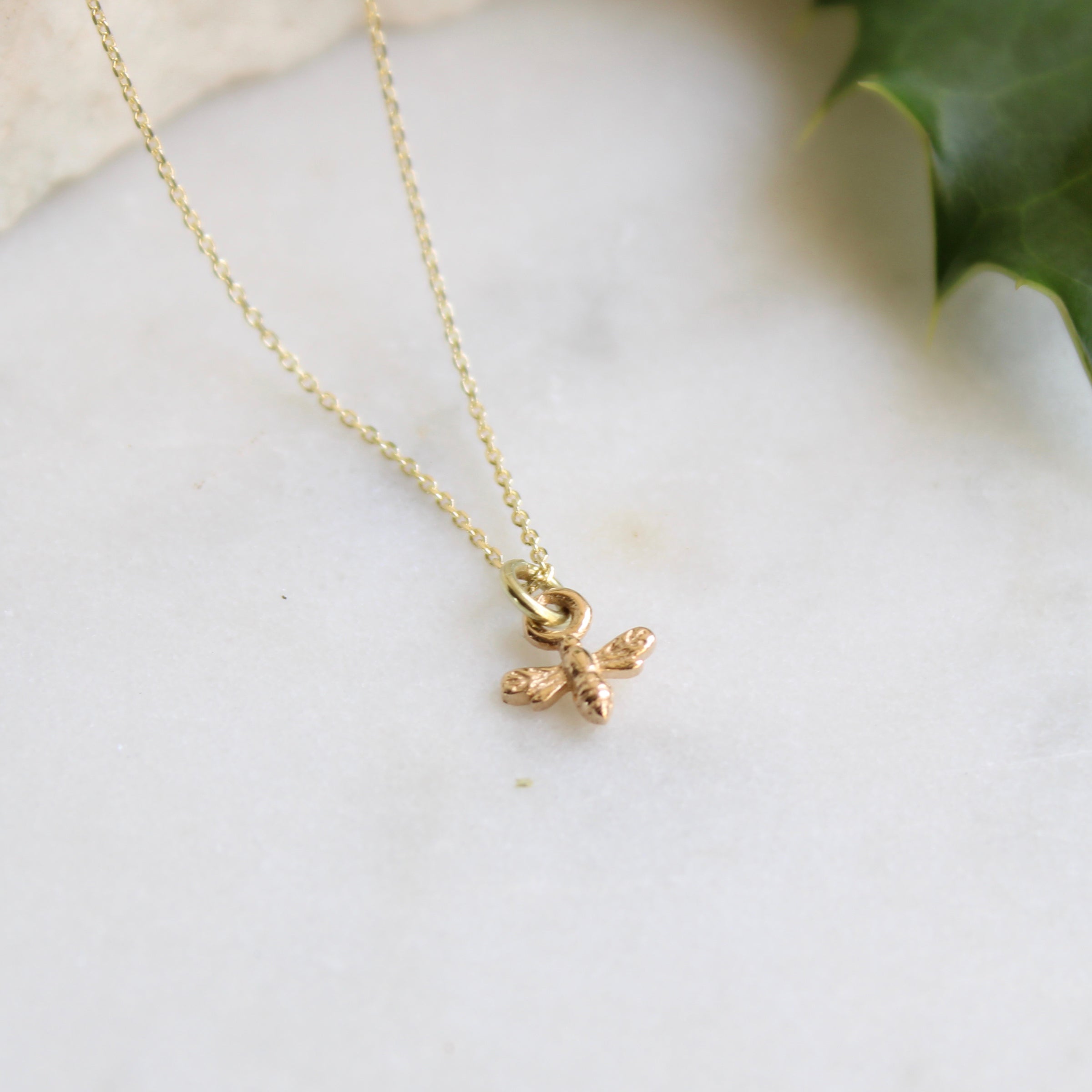 A stunning 14ct solid gold mini bee charm on a solid gold chain.