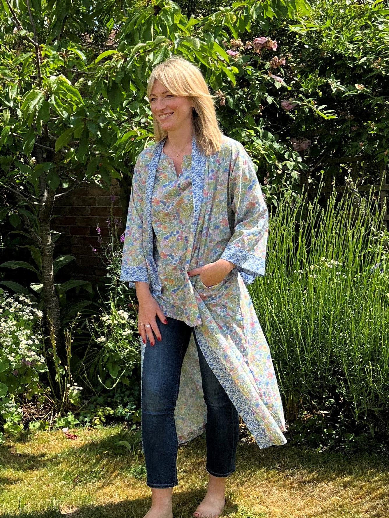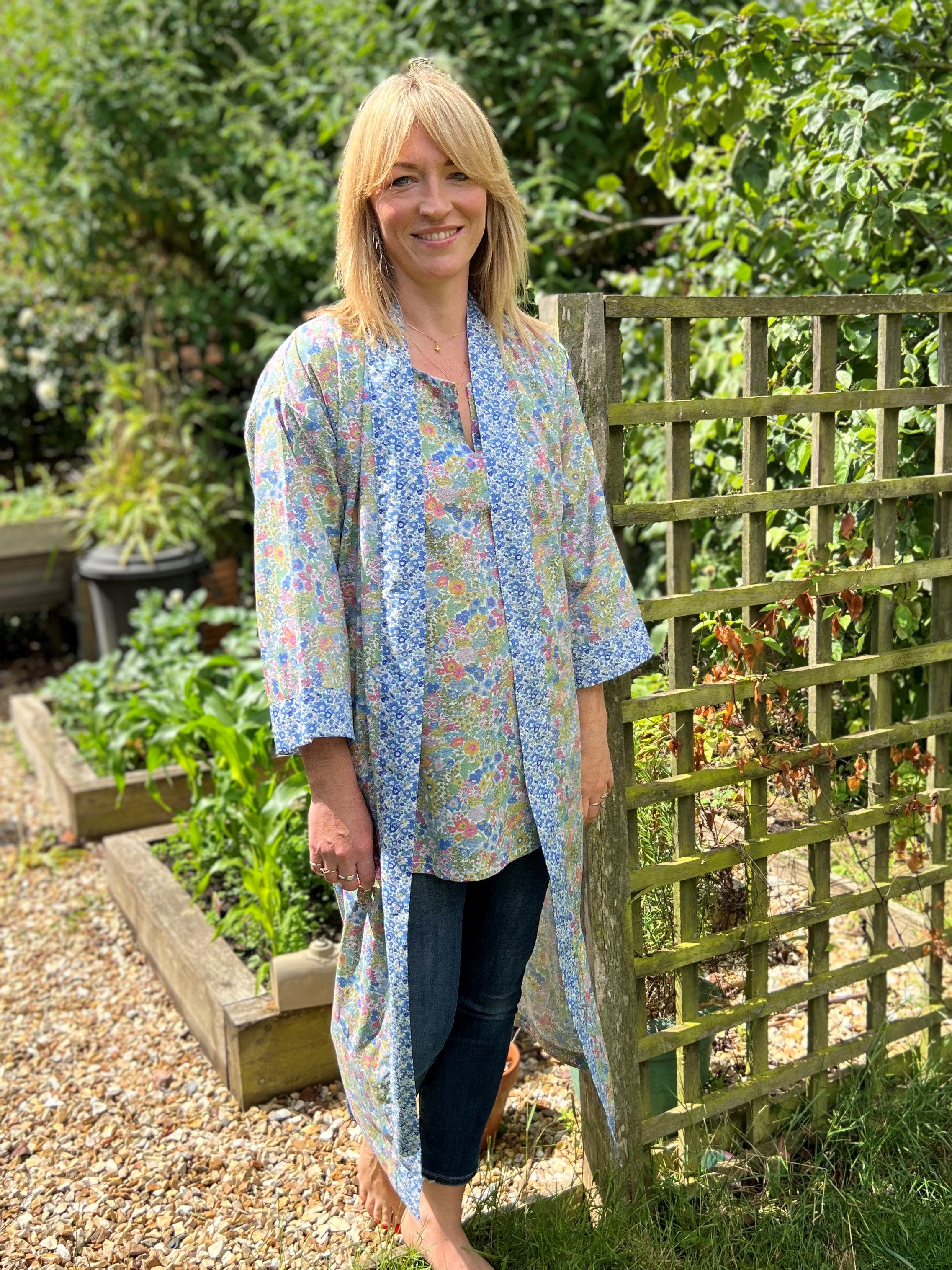 Long Kimono Robe Blue Libby - Made with Liberty Fabric