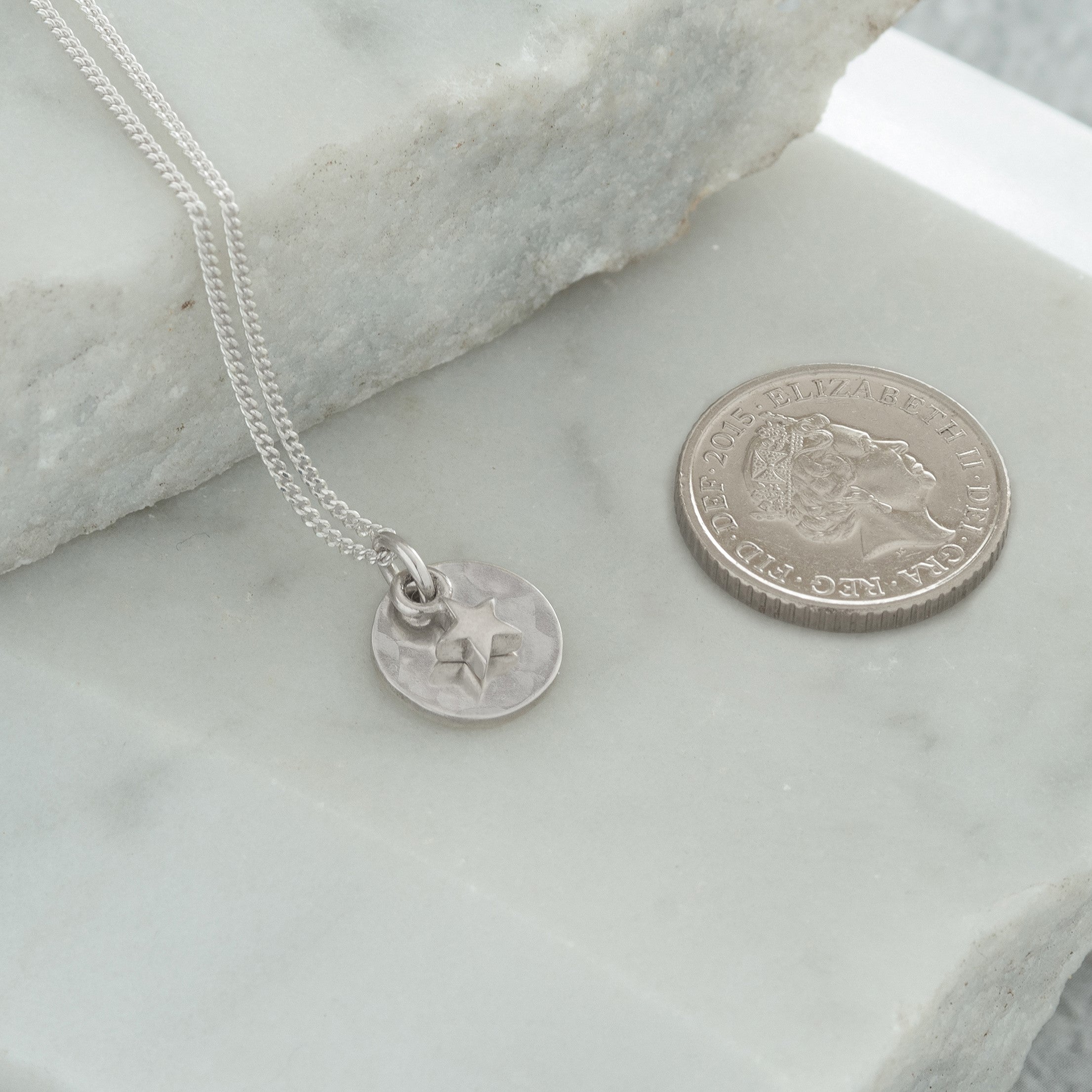 Mini Hammered Disc with Star Necklace Sterling Silver