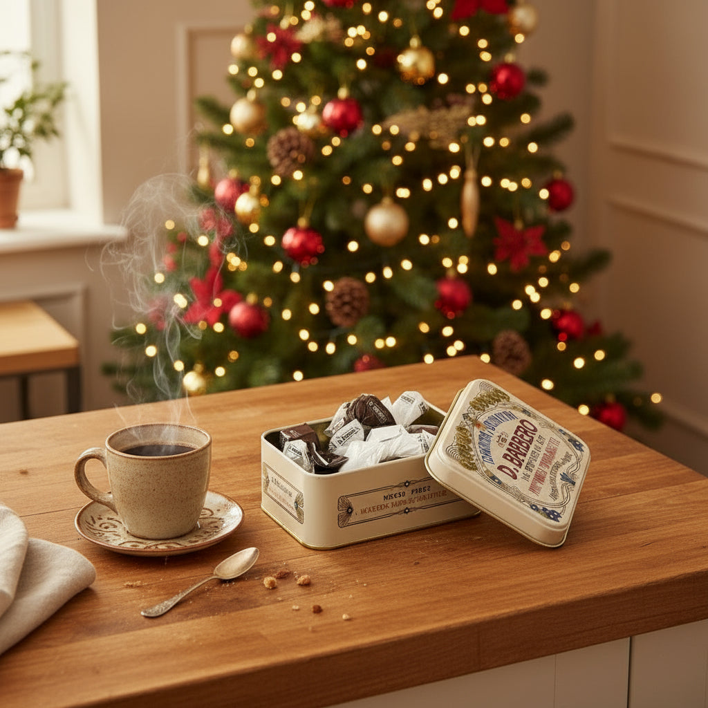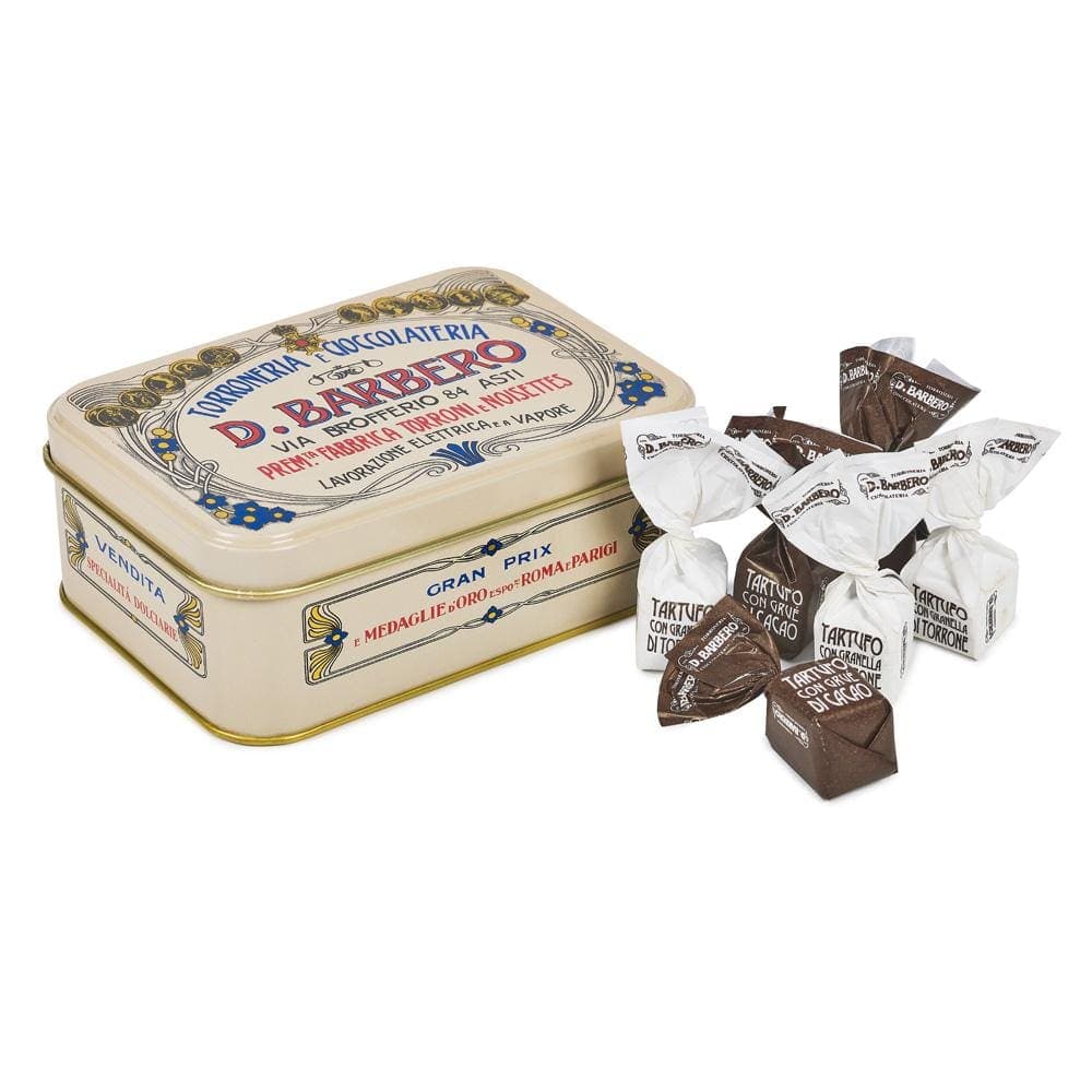 Handcrafted in Asti, Italy, by D. Barbero, these rich dark truffles are made with Piedmont hazelnuts, fine cocoa, and Barbero’s signature nougat pieces for added crunch. The result is a luxurious melt-in-the-mouth treat with a touch of history, each tin a taste of Italian confectionery tradition.