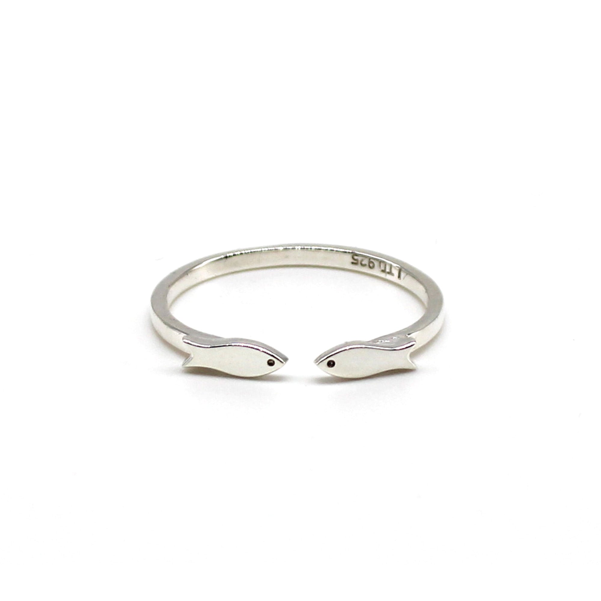 Delicate, Simple Adjustable Ring with Fish Design in Sterling Silver or Gold Vermeil made in UK.