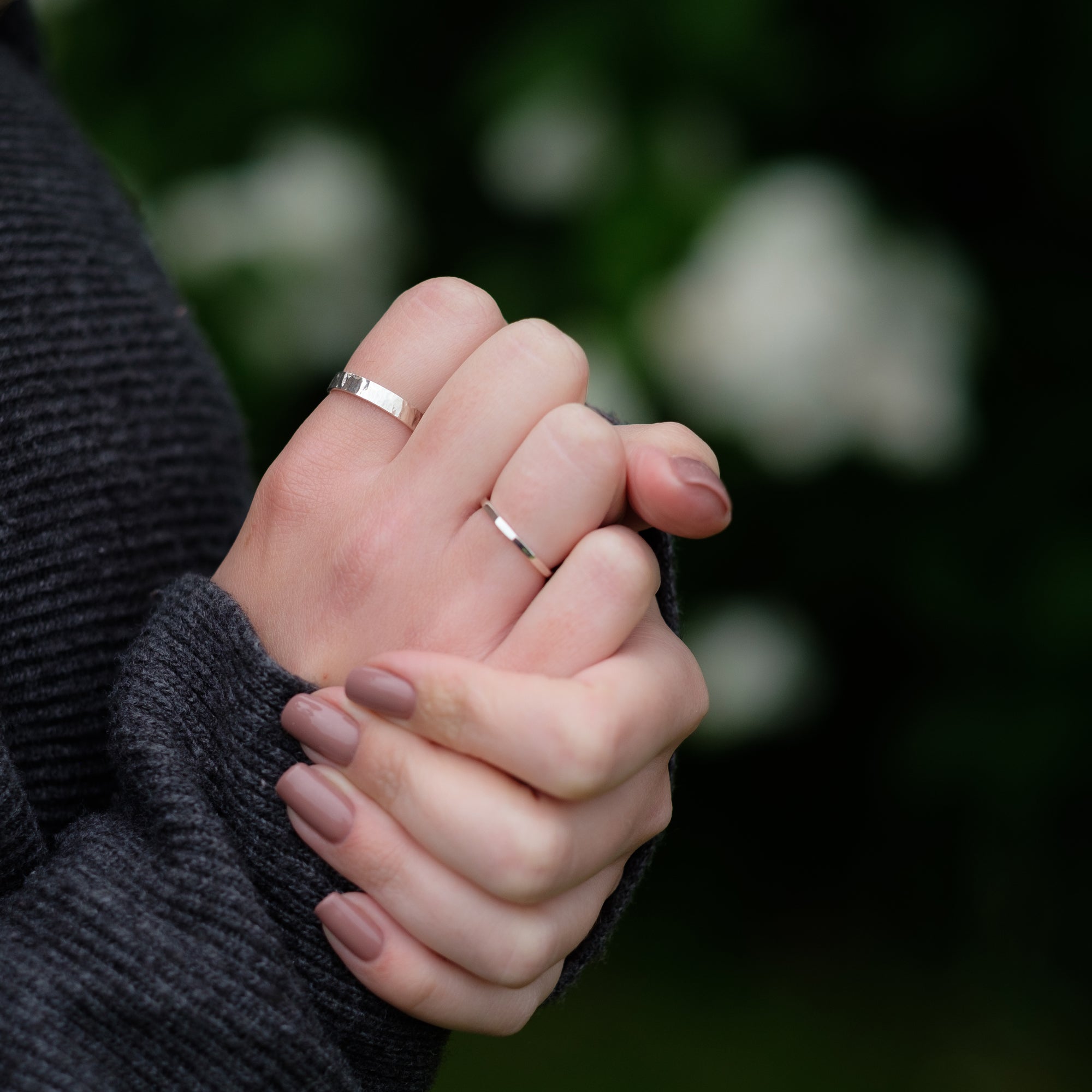 A Minimalist Sterling Silver Ring with a Textured Hammered Finish.