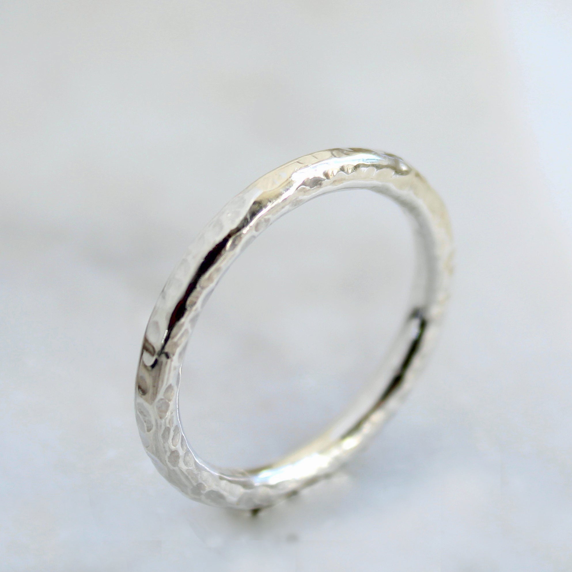 A sterling silver thumb ring with a hammered finish.