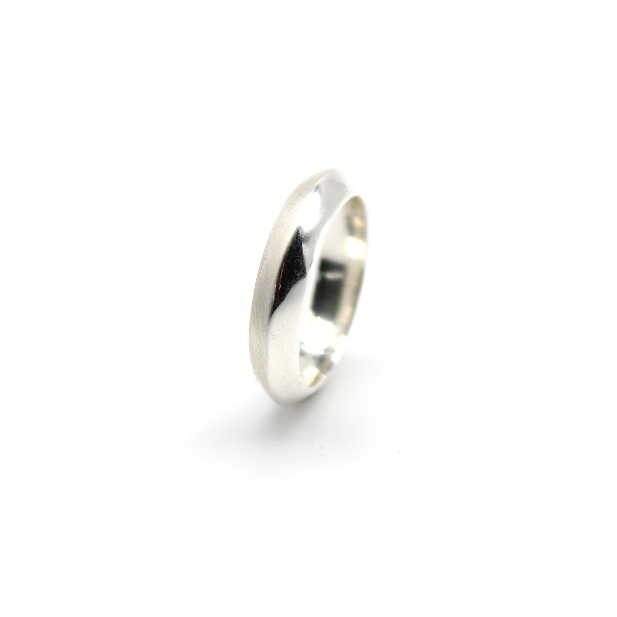 This ring has a triangular profile, half of which is brushed and half of which is polished sterling silver. It could be worn as a stacking ring. The minimalist design is striking and really makes a statement. The perfect gift for a husband, wife, son or daughter. Available in medium, large and extra large. Matching apex earrings are available.