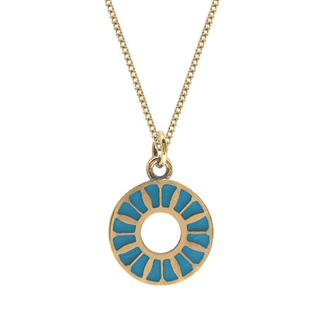 Teal Enamel Flower Medallion Necklace in Gold Vermeil.